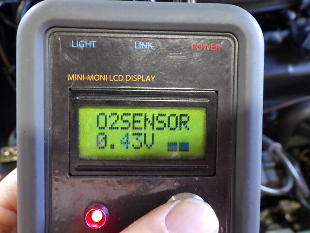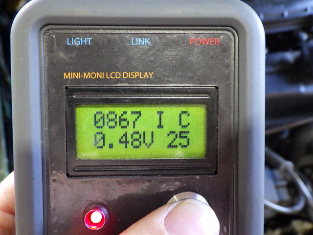 O2 SENSOR - O2センサーの電圧およびその状態を表示。アイドリング時は0.4V以下(リーン)~0.6V以上(リッチ)を常に上下しています。