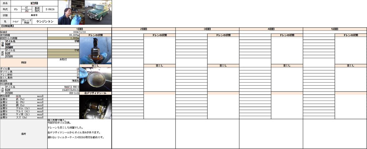 今回初のオイル交換でしたのでオイルカルテを作りました。