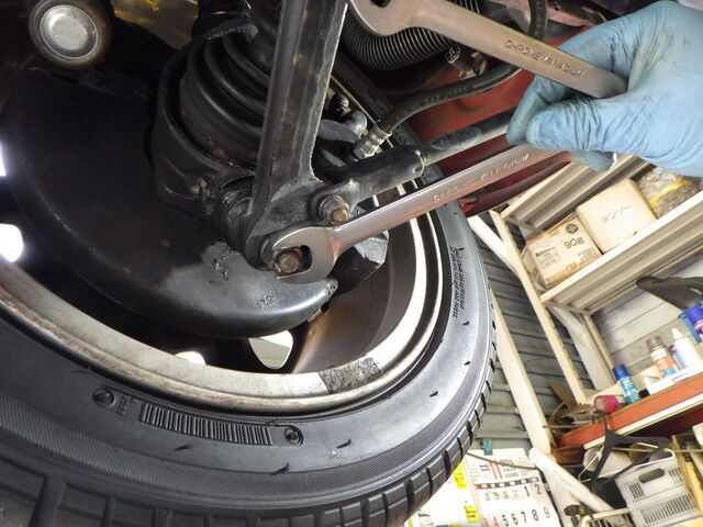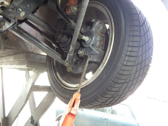 ショックアブソーバーが抜け始めてるのでタイヤが簡単に持ち上がってしまいますね。。