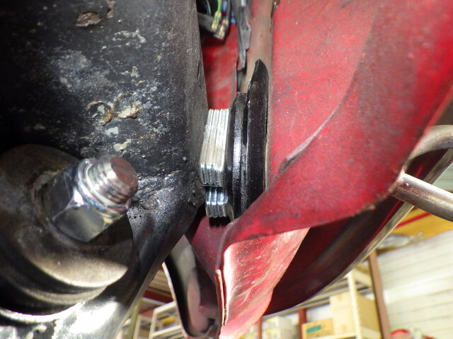ここはマウントとサブフレームの間をシム調整する必要ありです。
