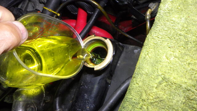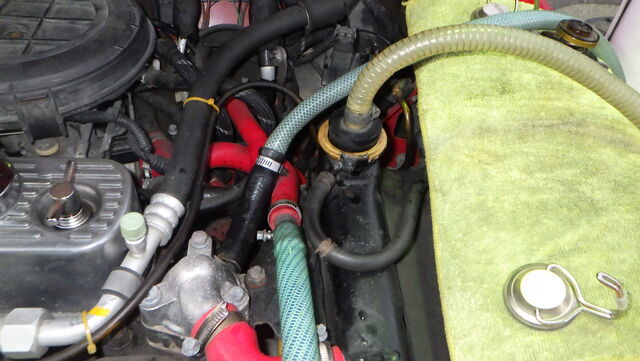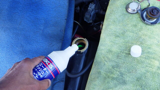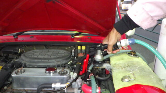 ラジエターフラッシュ入れてエンジン始動で洗浄開始