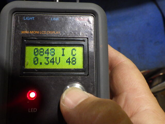 左下から スロットルポジション電圧 ステップ値(スロットルバルブの開度をコントロールするステッパーモーターの値)