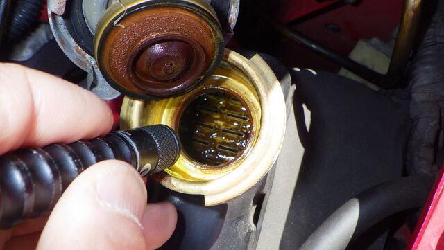 ラジエターに勢いよく流れ込んで来てるのが見えます