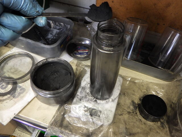 左はタンクをずらしての作業。
