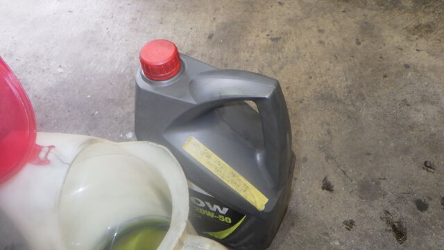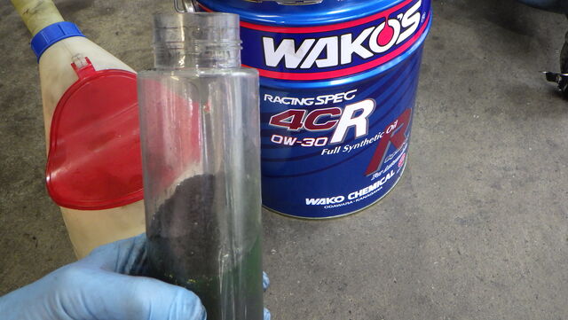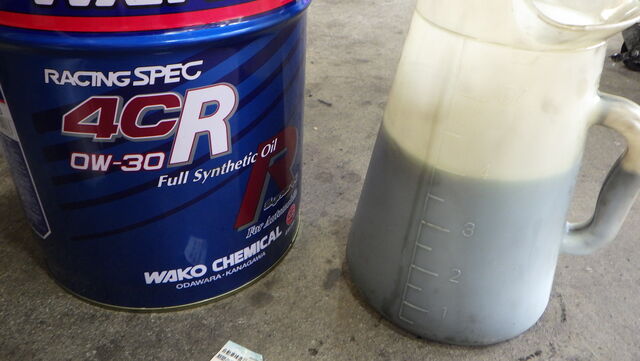 さっきワークスATから抜いた、レースで70㎞走ったレーシングオイルをいただきます。。。