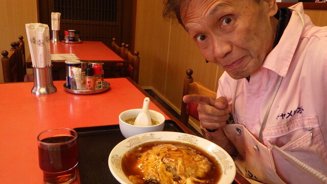 近くの来々亭で大好物のカニ玉丼をいただきます。。。。