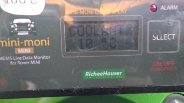 ワークスATエンジン始動2分後の水温計は10℃