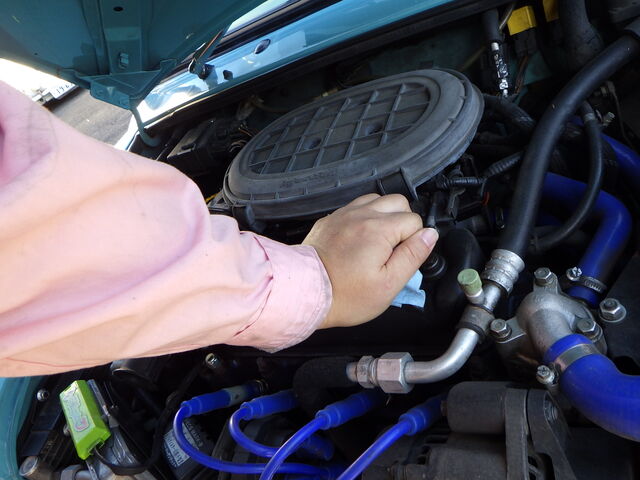 アクセルケーブルは張り気味だったので少し緩くしておきます。