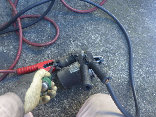 スターターのバッテリーからの線と信号線の端子を短絡させてみますがスターターは回りません、、、