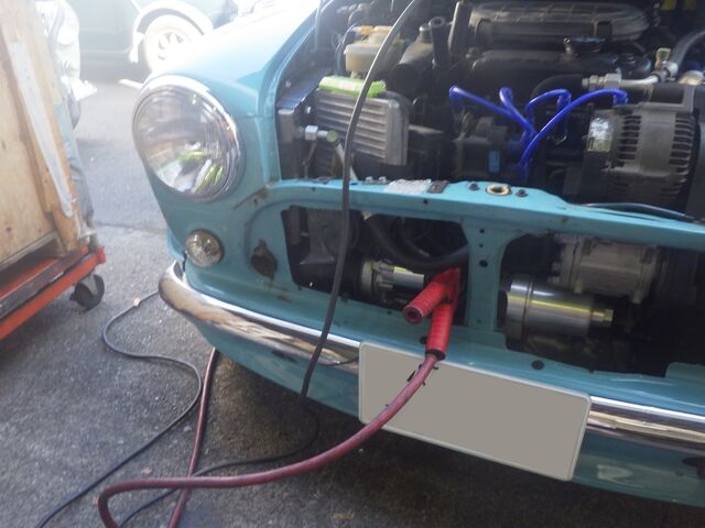 配線に抵抗がないか確認するためバッテリーからスターターへ直接配線をつなげてみます。