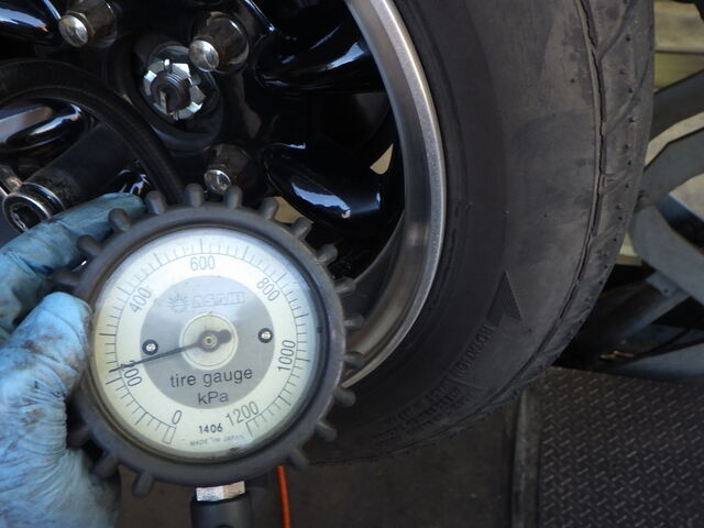 タイヤの空気圧は220kpaで揃えておきました。が。