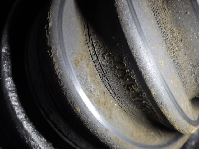 右のアウターブーツに深めのクラックがあります。