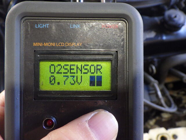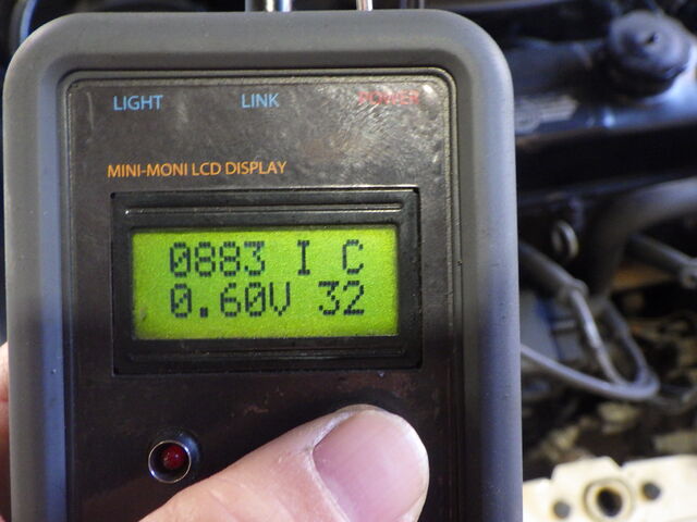 O2 SENSOR - O2センサーの電圧およびその状態を表示。アイドリング時は0.4V以下(リーン)~0.6V以上(リッチ)を常に上下しています。
