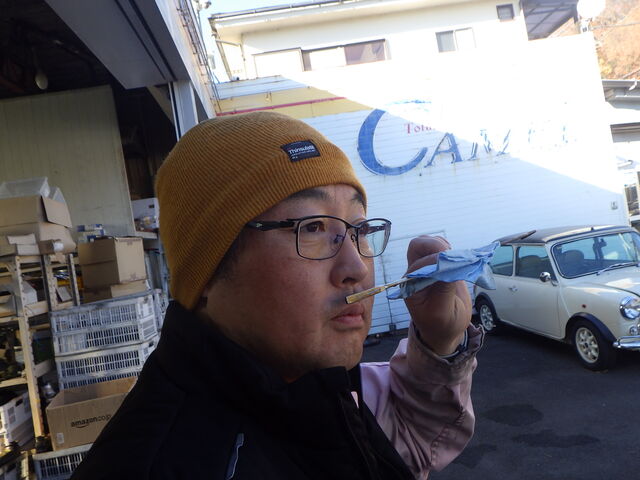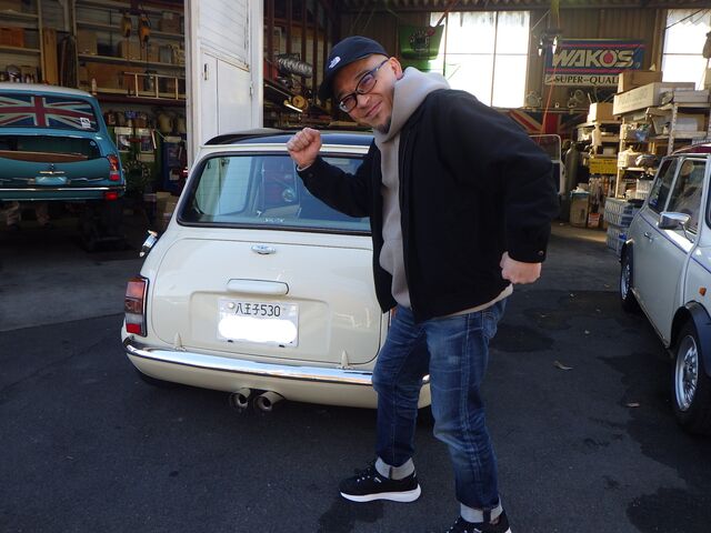 約二年前に専門店で購入したミニに乗って。