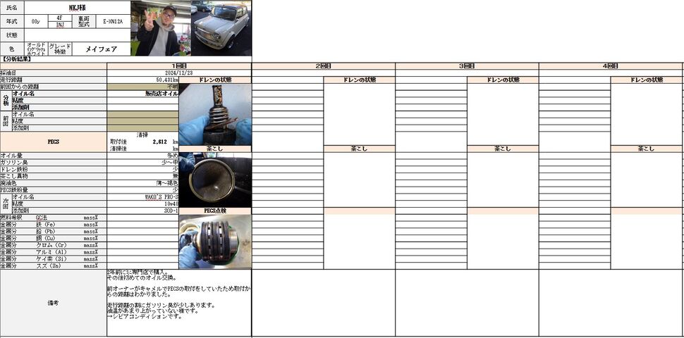 今回初めてのオイル交換でしたのでオイルカルテを作りました。