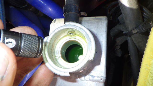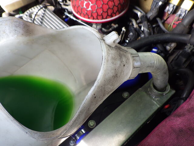 ラジエータにLLCと水路保護のためのクーラントブースターを投入。