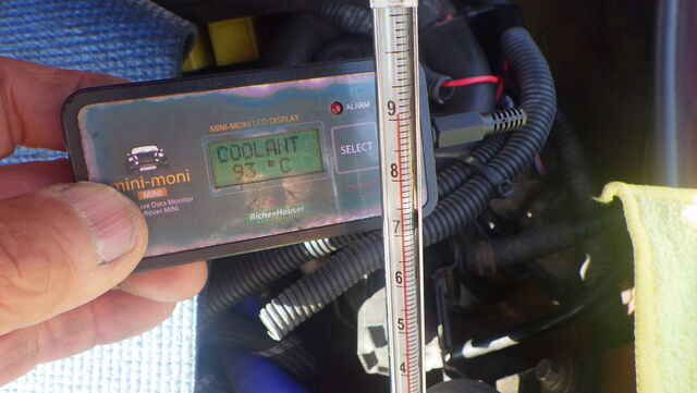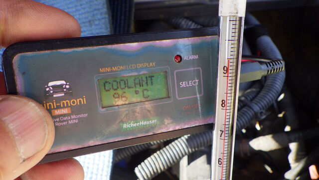エンジン側の水温センサーは78℃まで上昇してますがラジエターに挿した温度計は19℃をキープ。。