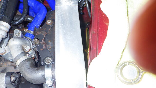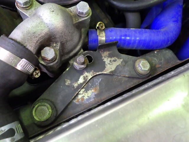 ラジエーターのアッパーステーはアルミラジエーターの影響でしょうか?変わった付け方をしています。