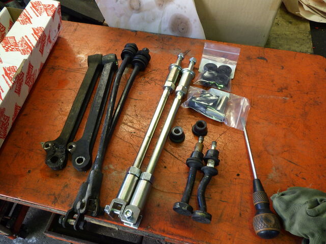 新しいテンションロッドに交換します。同時に各部ブッシュも交換します。