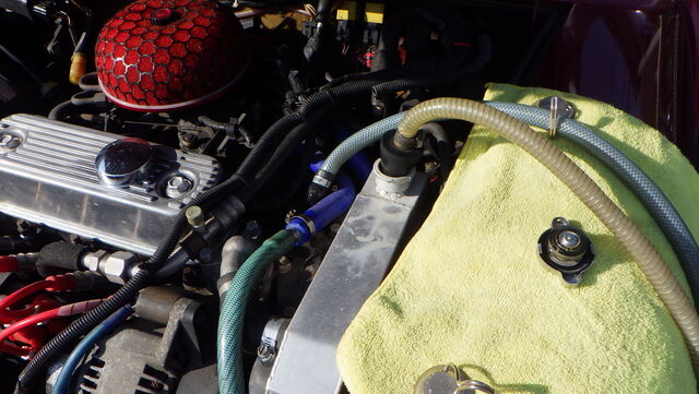 ラジエターフラッシュ入れてエンジン始動で洗浄開始