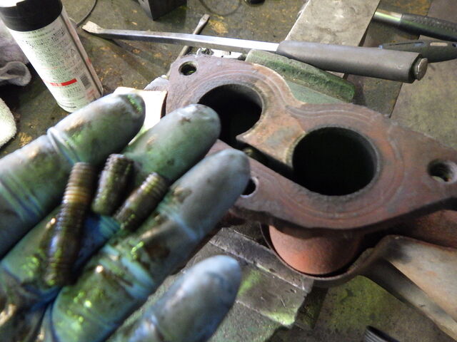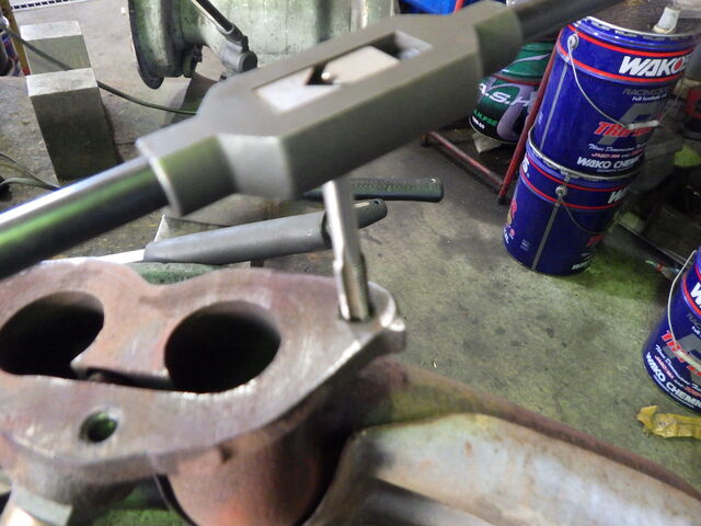 ダウンパイプのステディボルトは折れてしまっています。