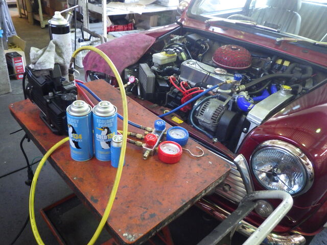 クーラーガスをチャージしエンジン積み込み完了です。