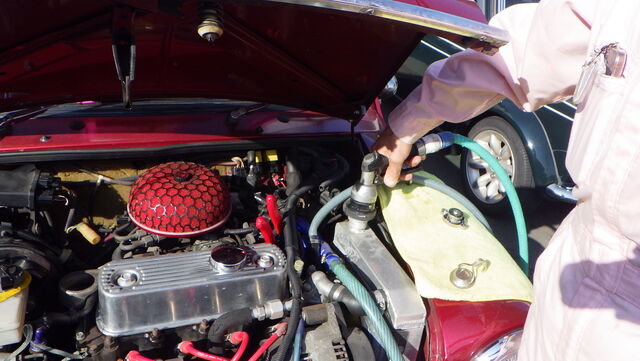 ラジエター口から逆流で吸い出します