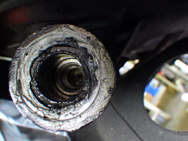 ステディロッドのブッシュは潰れてしまっていますね。こちらも交換します。