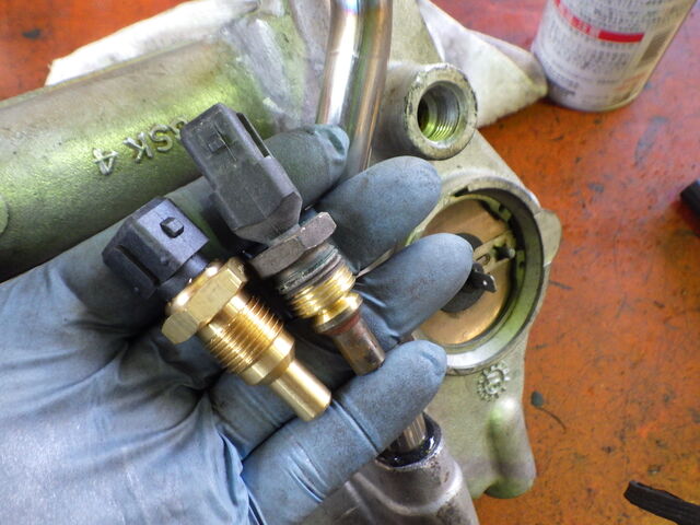 マニホールドを外しているので、新しい水温センサーに交換です