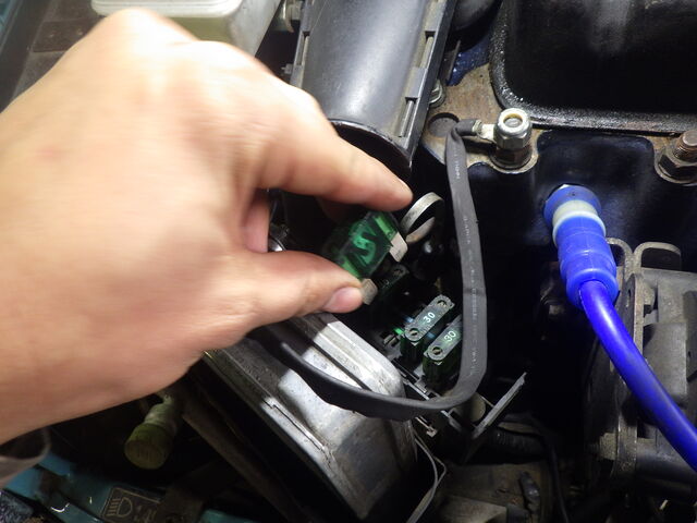 まずはエンジンECU付近にあるヒューズを取り外し。