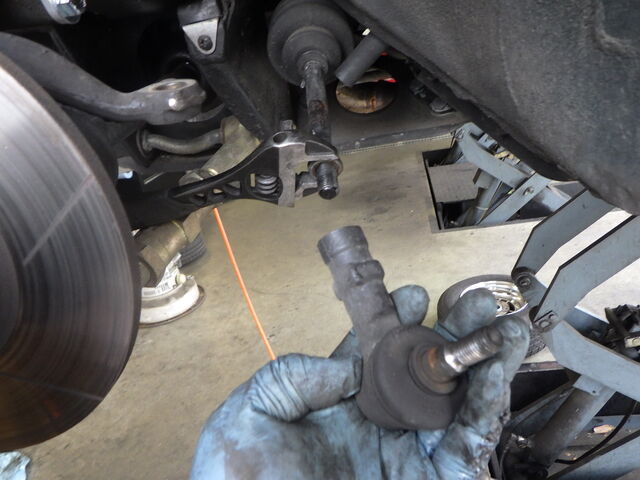 ガタのあった左のタイロッドエンドも交換します。
