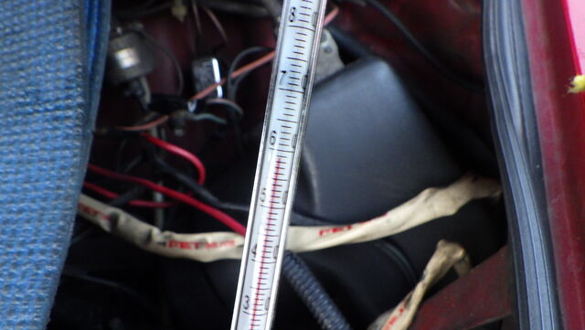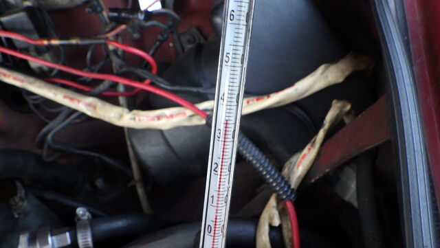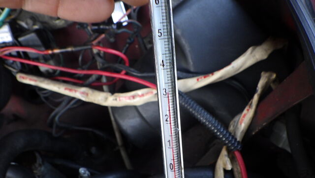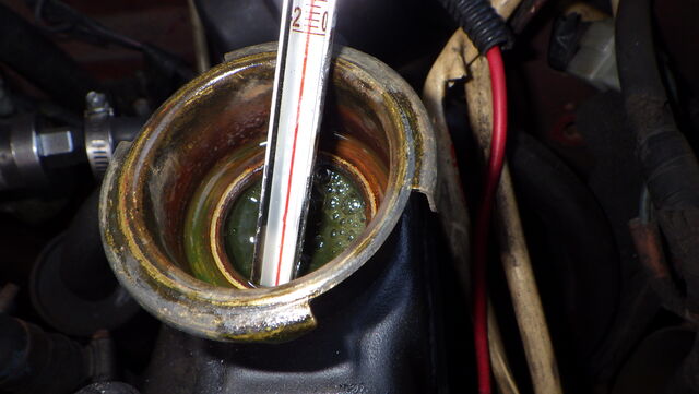 1000㏄キャブ車なのでアナログの水温計とラジエターに挿した温度計を比較していきます