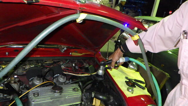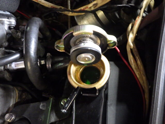 ラジエターフラッシュ入れてエンジン始動で洗浄開始