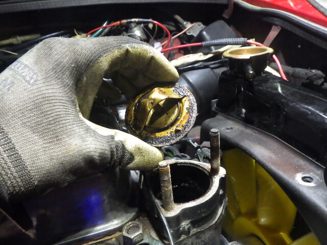 ラジエターを見ると。。エンジン側から勢いよく流れ込んで来てしまってます。