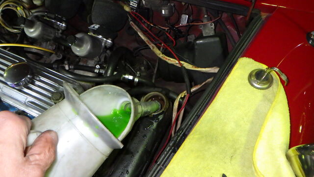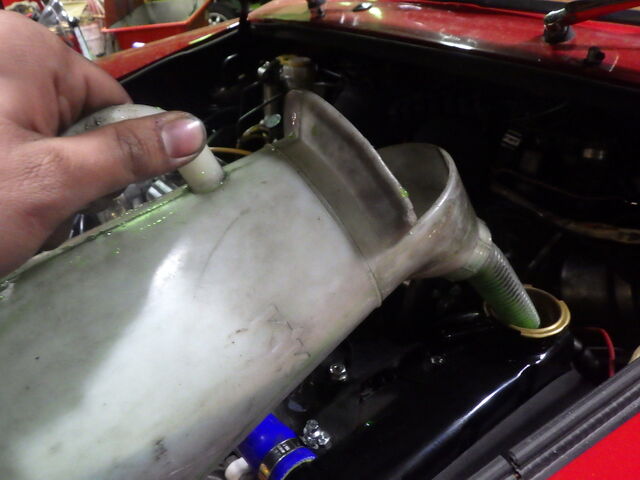 水回り部品交換の作業前もう少しお待ちいただくようですのでLLCを入れておきます。。。