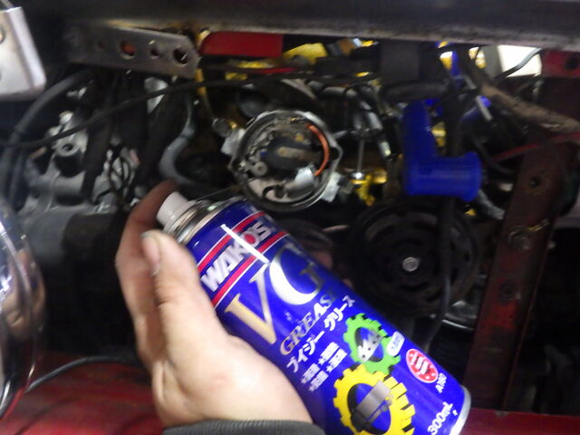デスビローターの軸部分はグリスアップしておきました。