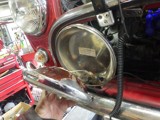 車検の事前検査で光軸が合わないので、車検用のヘッドライトに交換します。