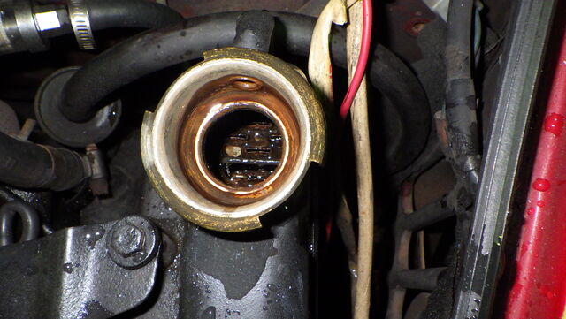 サーモスタットは開きっぱなしで固着してしまってます。