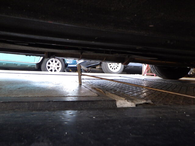 車検後の走行チェック。タイロッドを交換したのでハンドルセンターがズレてしまっています。それと走行時フロント側からゴロゴロと音がします。