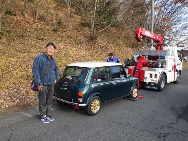 丁度今日はローダーが都内へ出払っていたので自動車保険のロードサービスで搬入。