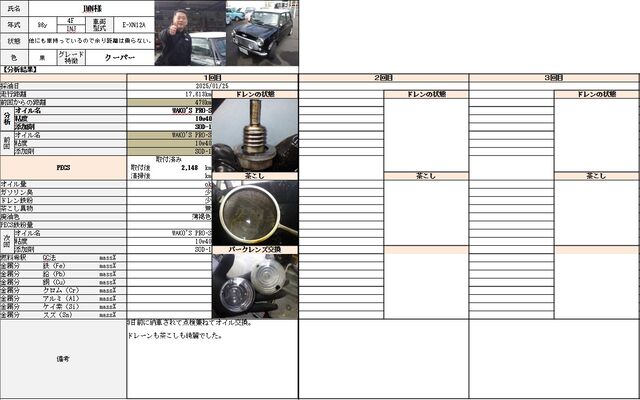 今回初のオイル交換でしたのでオイルカルテを作りました。