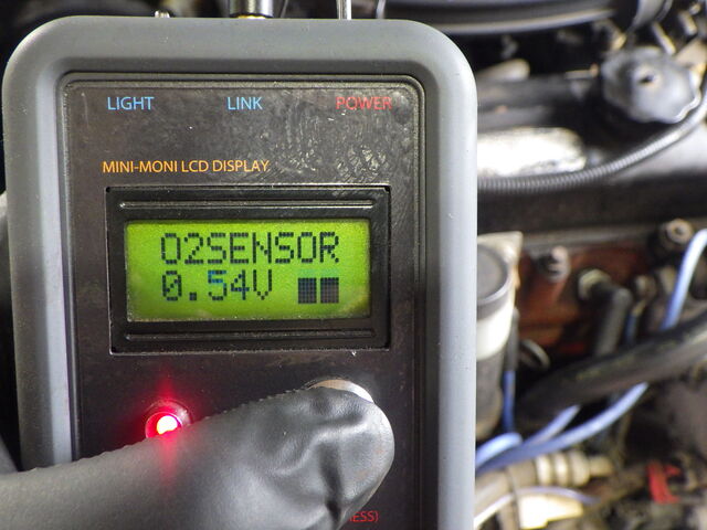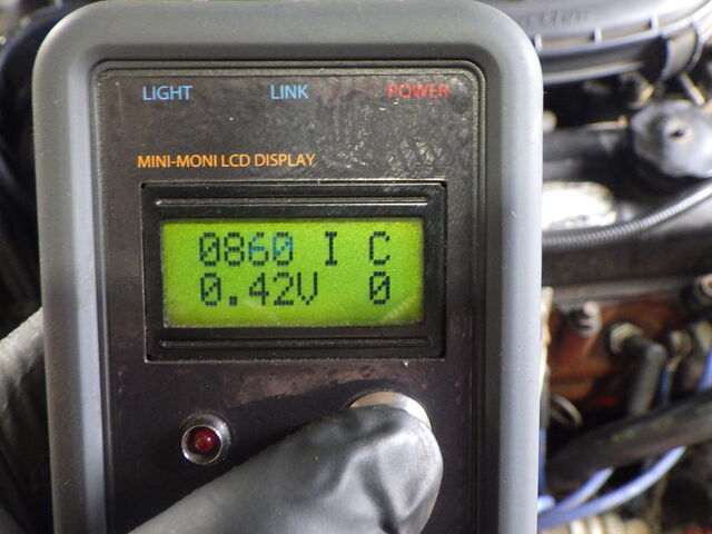 O2 SENSOR - O2センサーの電圧およびその状態を表示。アイドリング時は0.4V以下(リーン)~0.6V以上(リッチ)を常に上下しています。