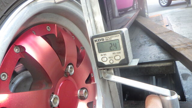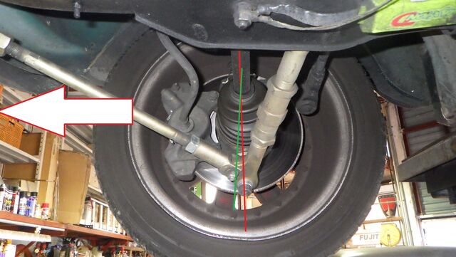 去年車検やってもらった時にキャンバー付きすぎてるからってロアームを短く調整したかもしれないです・・・・。