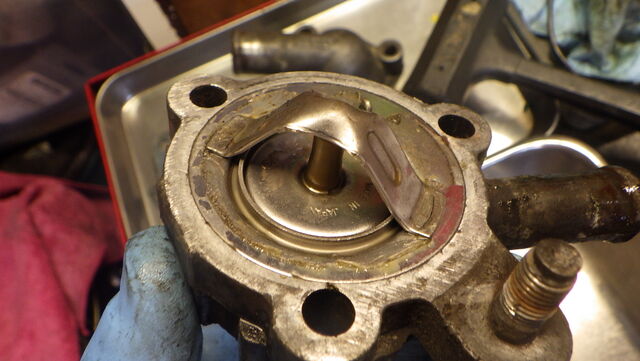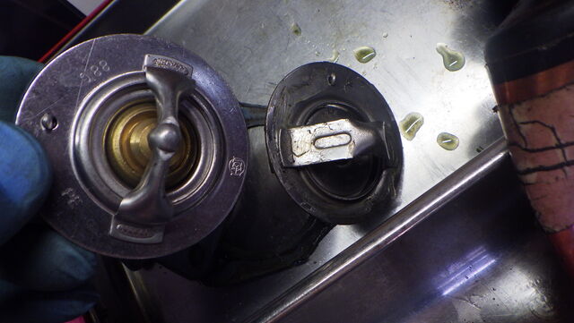 外したサーモスタット。。 一見閉じてるように見えるんですが隙間が開いてます。