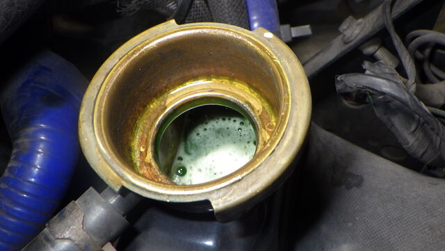 ラジエターには既に勢いよく流れ込んで来てしまってました。。。