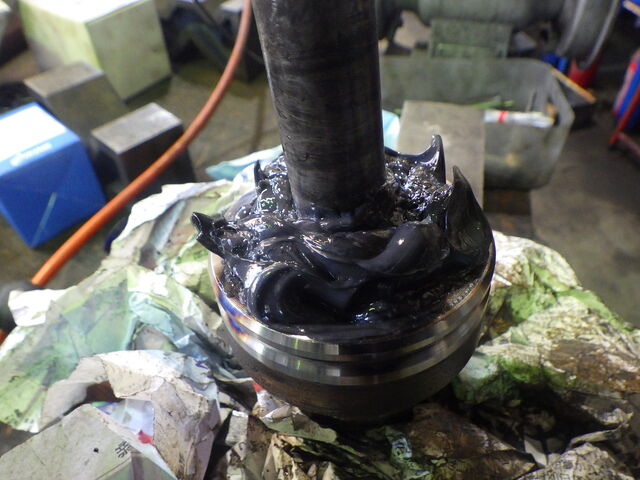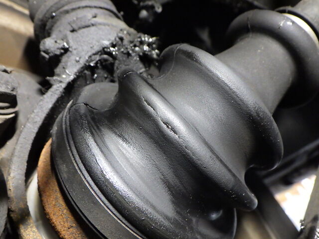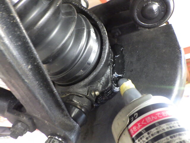 右のドライブシャフトアウターブーツがグリスまみれ。