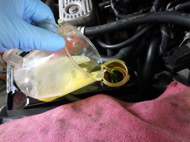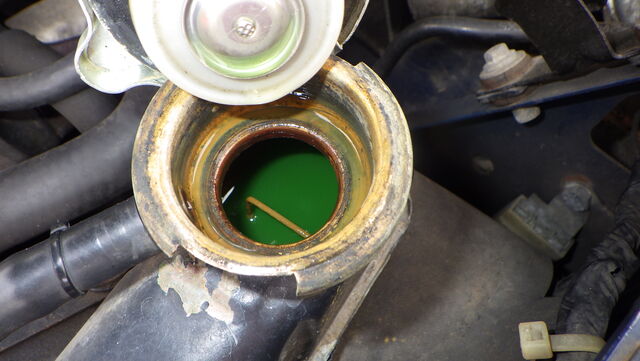ラジエター口から逆流で吸い出します