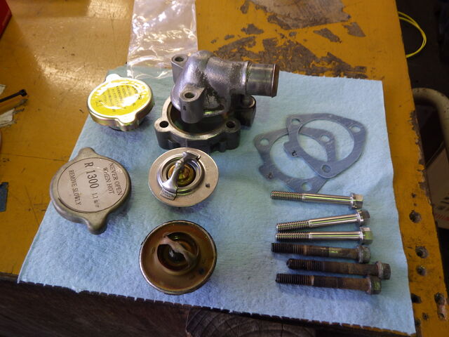 サーモスタットの密閉は機能していますが今回はサーモスタットもリフレッシュで交換させていただく予定です