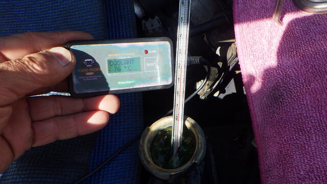 ラジエターに水温計を挿してエンジンかけます。。。