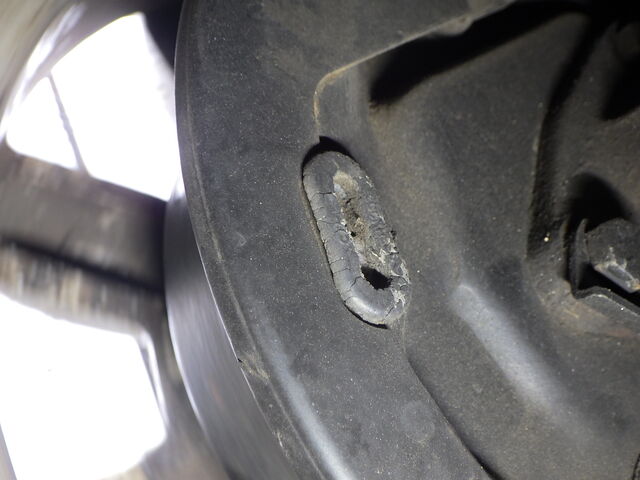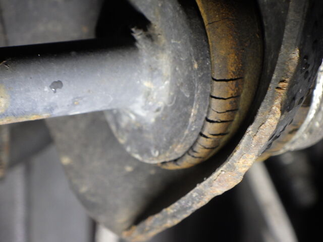 ドラムブレーキのブランキングプラグが割れています。